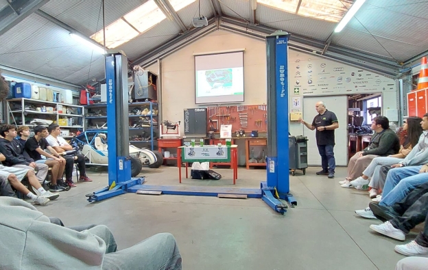 José André, técnico da MTE-Thomson referiu novamente o interesse por parte dos responsáveis nas suas palestras formativas, com a participação de 50 alunos do 1º, 2º e 3º ano do Curso de Mecatrónica Automóvel.