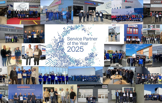 A Schmitz Cargobull distinguiu 35 empresas em 34 países com o prémio “Service Partner of the Year 2025”, reconhecendo o desempenho das melhores oficinas e centros de assistência da sua rede europeia.