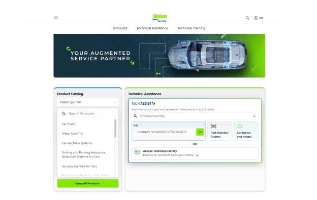 O Valeo Tech Assist é a plataforma gratuita de assistência técnica para profissionais do setor automóvel, permitindo identificar a peça Valeo correta e aceder a toda a informação técnica e tutoriais práticos associados. Disponível em 17 países e acessível em 11 idiomas (incluindo o português), o Tech Assist abrange mais de 70.000 referências Valeo. Em 2025, esta plataforma foi visitada por mais de 1,5 milhões de utilizadores.